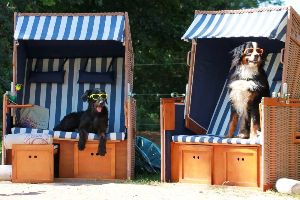 gemütlich in unseren Strandkörben – Spaß beim Schwimmen und Wasserballspielen im großen Pool (5m breit, 10m lang, 1,30 m hoch)